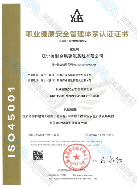 遼寧美耐金屬建筑系統(tǒng)有限公司位于遼寧(營口)沿海產(chǎn)業(yè)基地,專注于預制金屬建筑系統(tǒng)領域,是一家集工業(yè)建筑設計、制作、施工及相關的技術咨詢與服務為一體的綜合性服務企業(yè)。作為國家鋼結(jié)構(gòu)協(xié)會會員、中國建筑金屬結(jié)構(gòu)協(xié)會會員單位與國家高新技術企業(yè),美耐建筑集建筑工程施工總承包、鋼結(jié)構(gòu)工程專業(yè)承包等多種資質(zhì)于一身,并擁有22項鋼結(jié)構(gòu)建筑領域?qū)@?項軟件著作權。